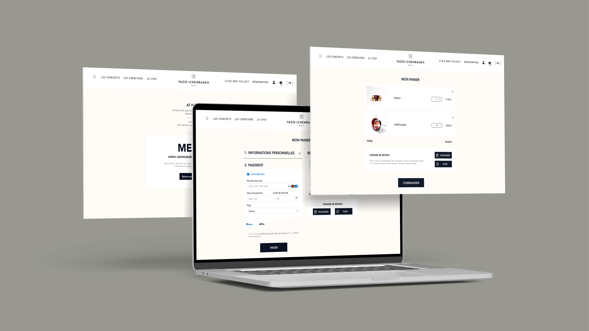 Projet de UX/UI design pour le site de Yazid Ichemrahen, champion du monde de pâtisserie et figure reconnue de la scène gastronomique parisienne.