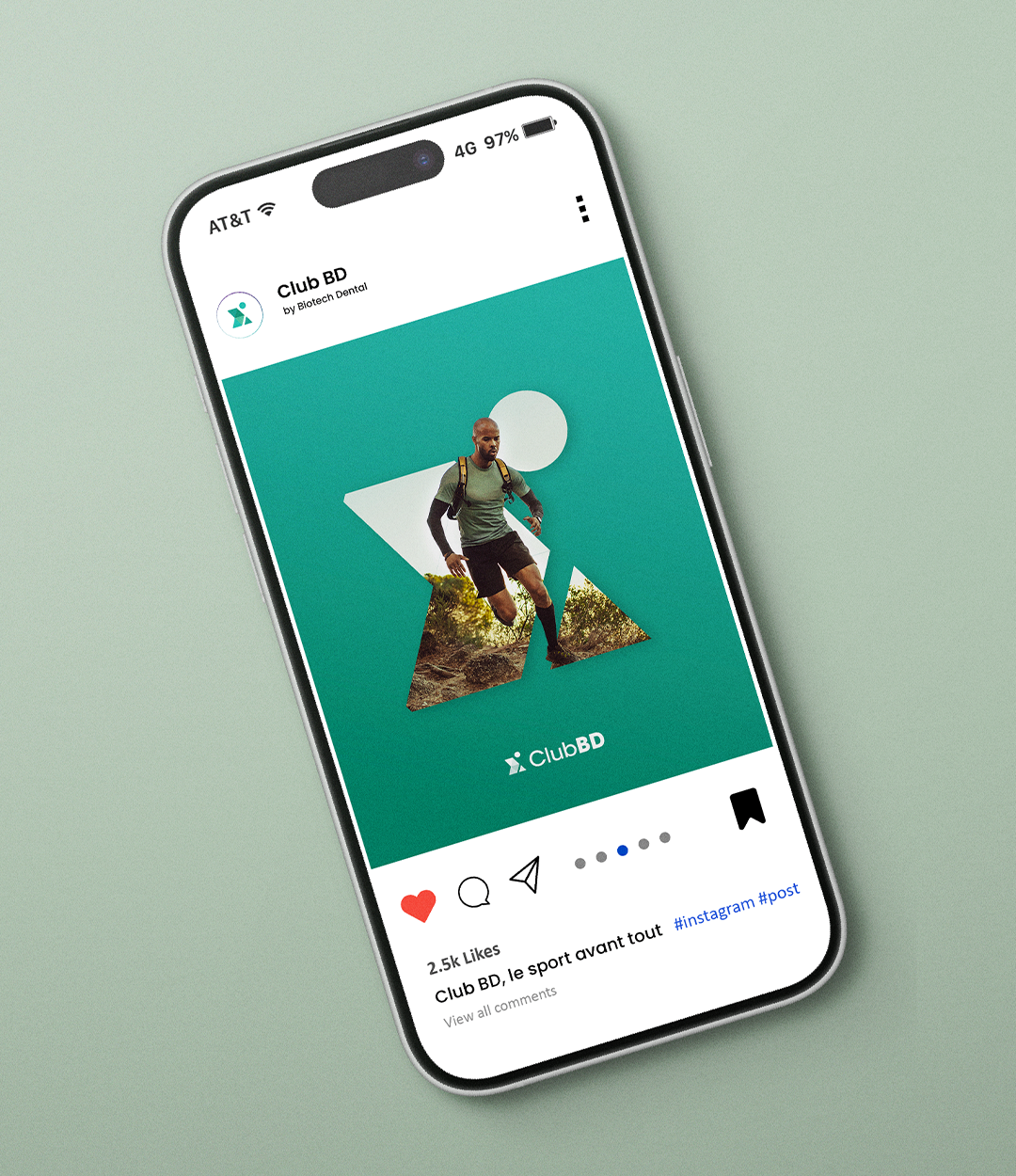Création de la communication visuelle digitale pour Club BD, la branche sportive de Biotech Dental.